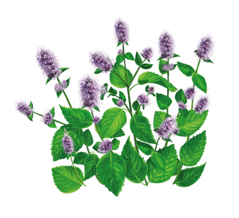 Перцева м'ята: має антисептичні властивості, допомагає контролювати виділення сальної секреції, стимулює мікроциркуляцію шкіри.